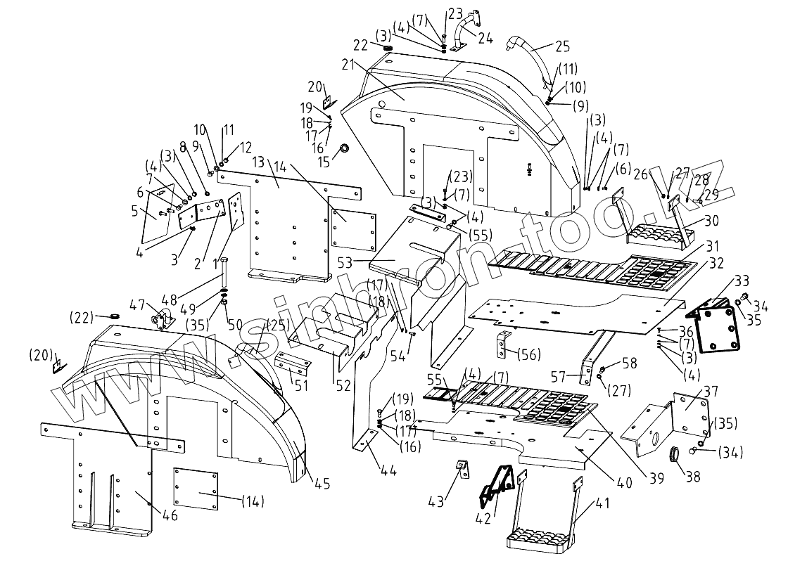 Каталог запасных частей к технике: DongFeng 404CE. Foot Mud Shields Rest