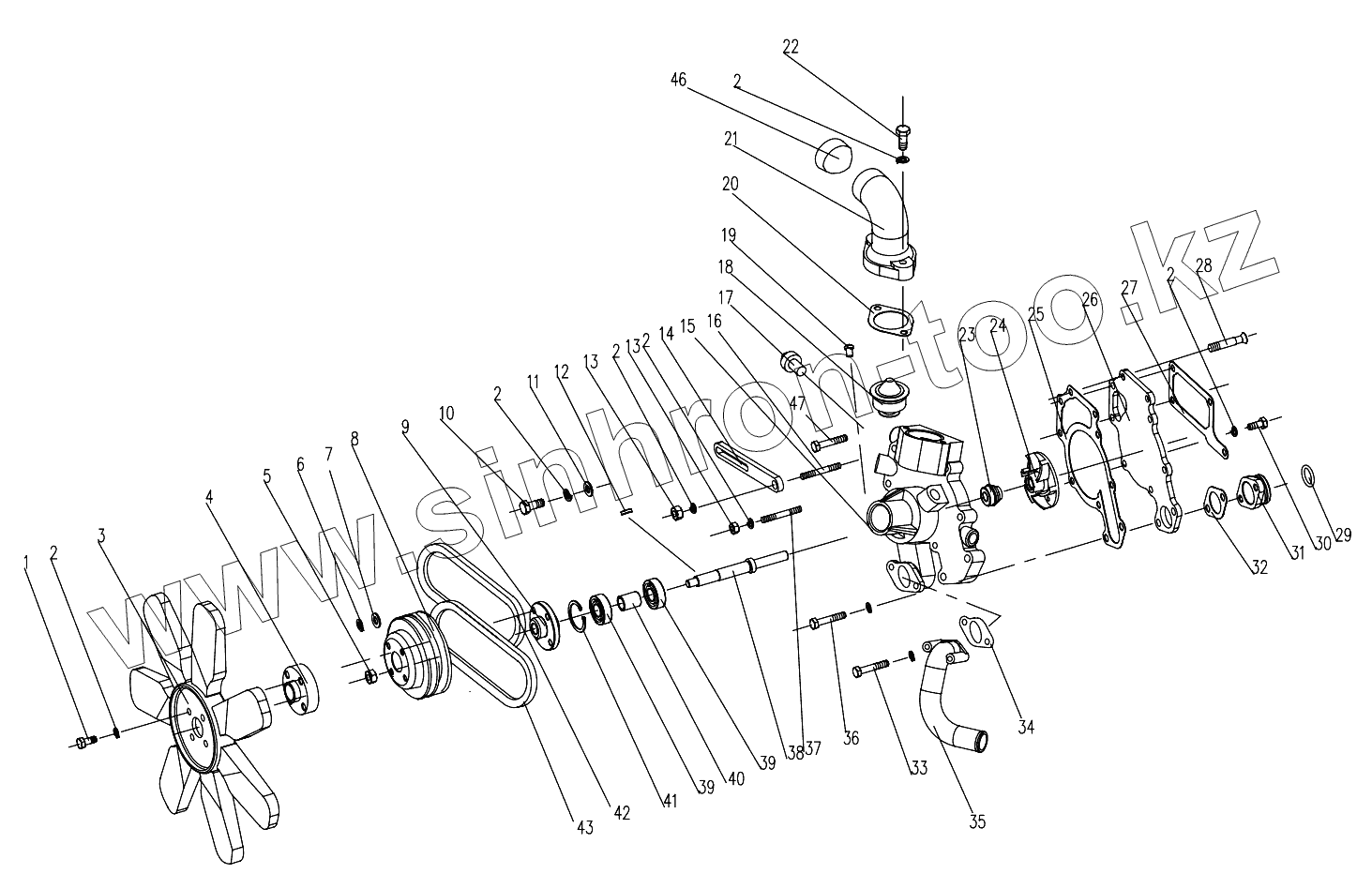 Каталог запасных частей к технике: DongFeng 404CE. Water Pump and Fan Assembly