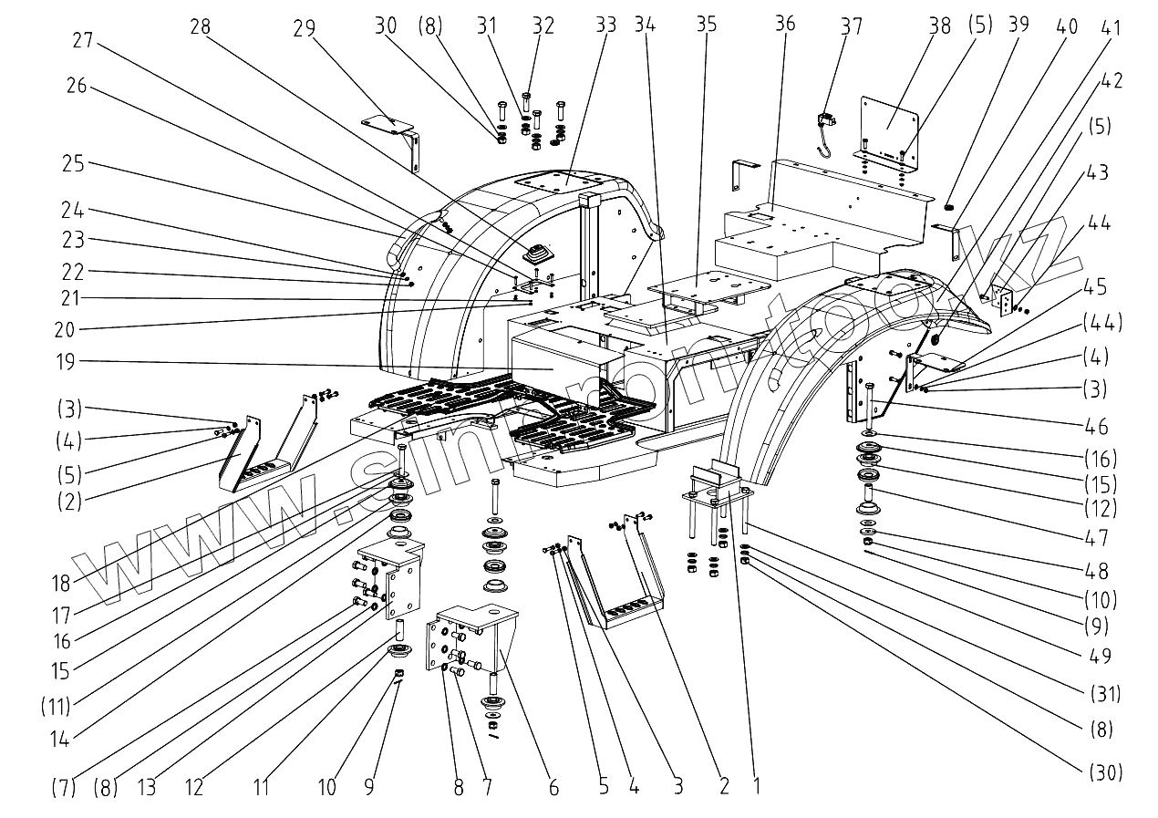 Каталог запасных частей к технике: DongFeng 404G2. Foot Mud Shields Rest