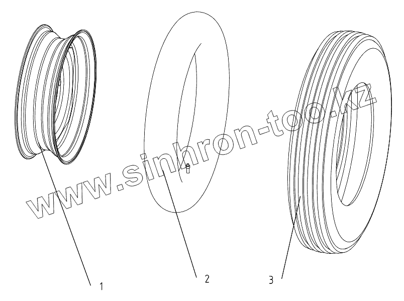 Каталог запасных частей к технике: DongFeng 504G3. Directive Wheel (6.00-16) 500D.32.001
