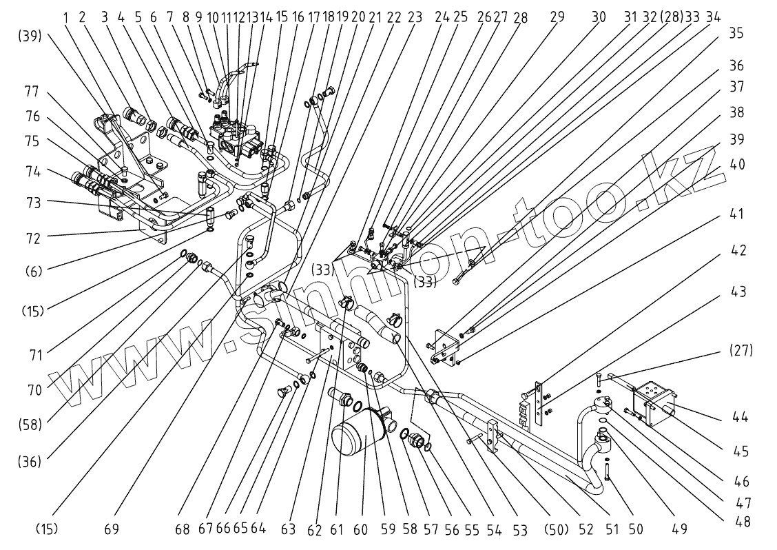 Каталог запасных частей к технике: DongFeng 504G3. Hydraulic Lifting Pipeline Assembly 504G3.58.001-2