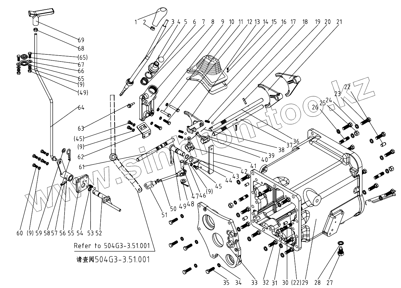 | 3 | 504G3-3.37.011-1 | Gear shift lever,main change speed | |