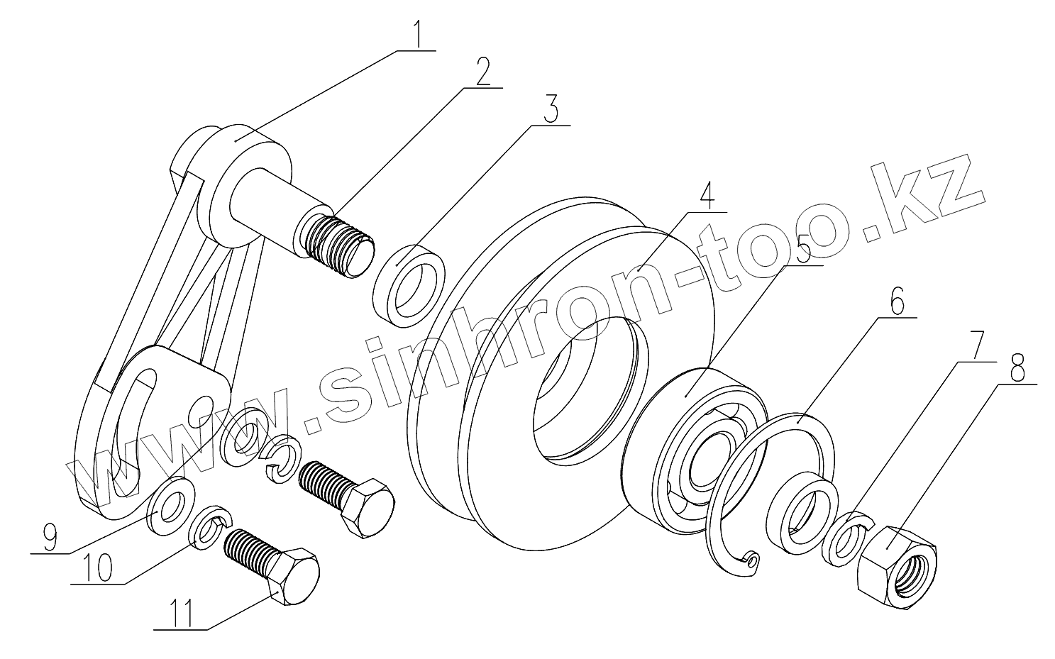 Каталог запасных частей к технике: DongFeng 504G3. Tension pulley assembly