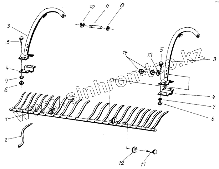 Рама - пальцевый брус - косилочные ножи с зубьями внизу