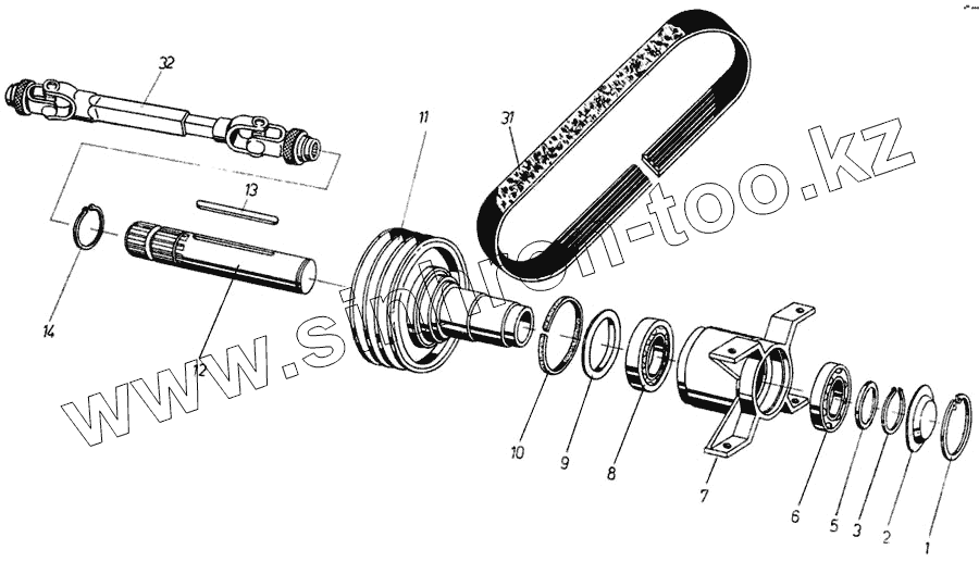 Ручной тормоз, ременная муфта, муфта обратного хода, обводной вал, регулировка откидной заслонки