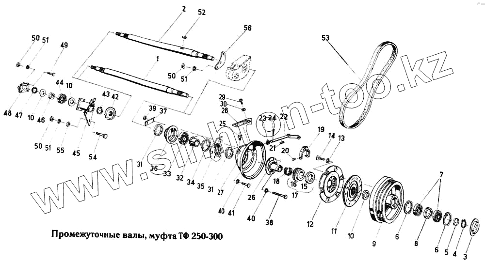 Каталог запасных частей к технике: Fortschritt Е-303. Промежуточные валы, муфта ТФ 250-300