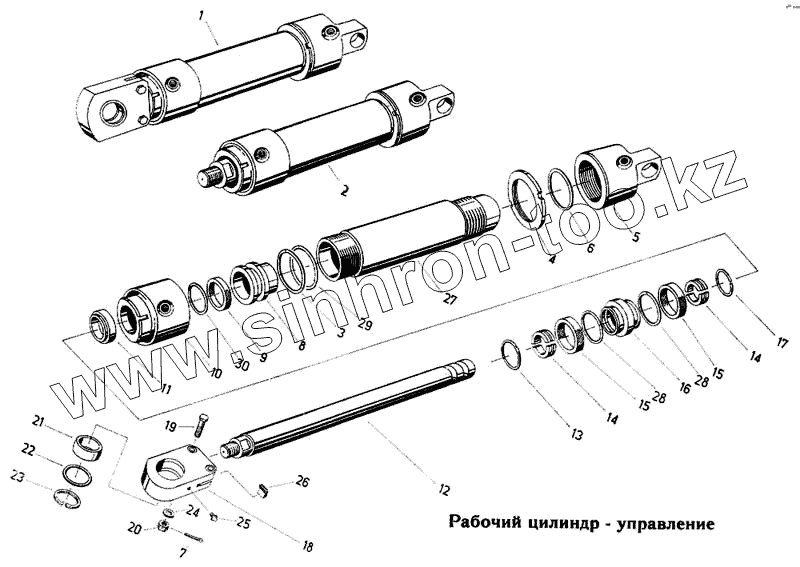 Каталог запасных частей к технике: Fortschritt Е-303. Рабочий цилиндр – управление