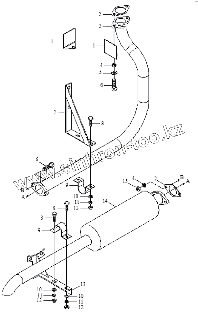 Каталог запасных частей к технике: Foton Europard 25. Exhaust Tube Assembly-3 (Optional)