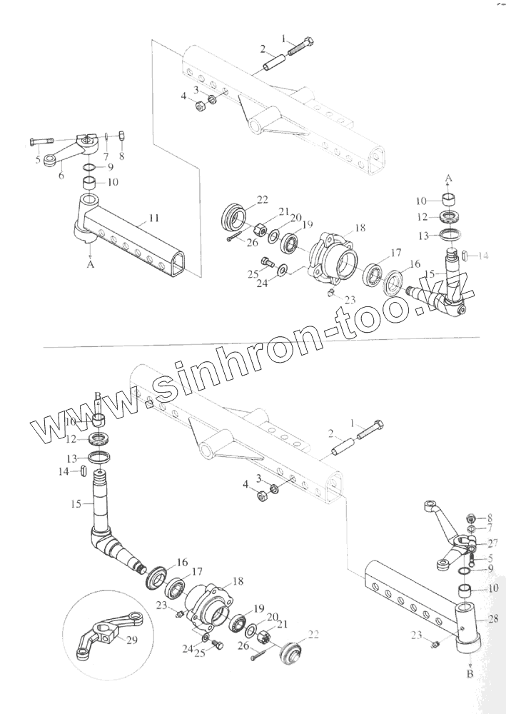 Каталог запасных частей к технике: Foton Europard 25. Front axle assembly-2