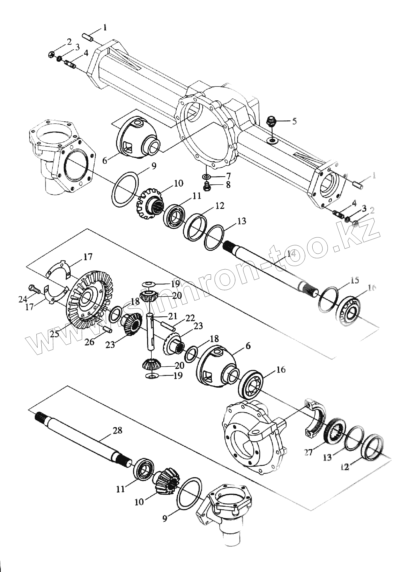 Каталог запасных частей к технике: Foton Europard 25. Front driving axle assembly-3