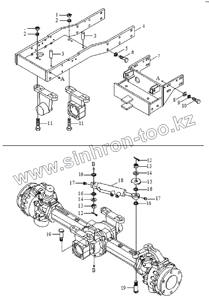 Каталог запасных частей к технике: Foton Europard 25. Front driving axle assembly-7