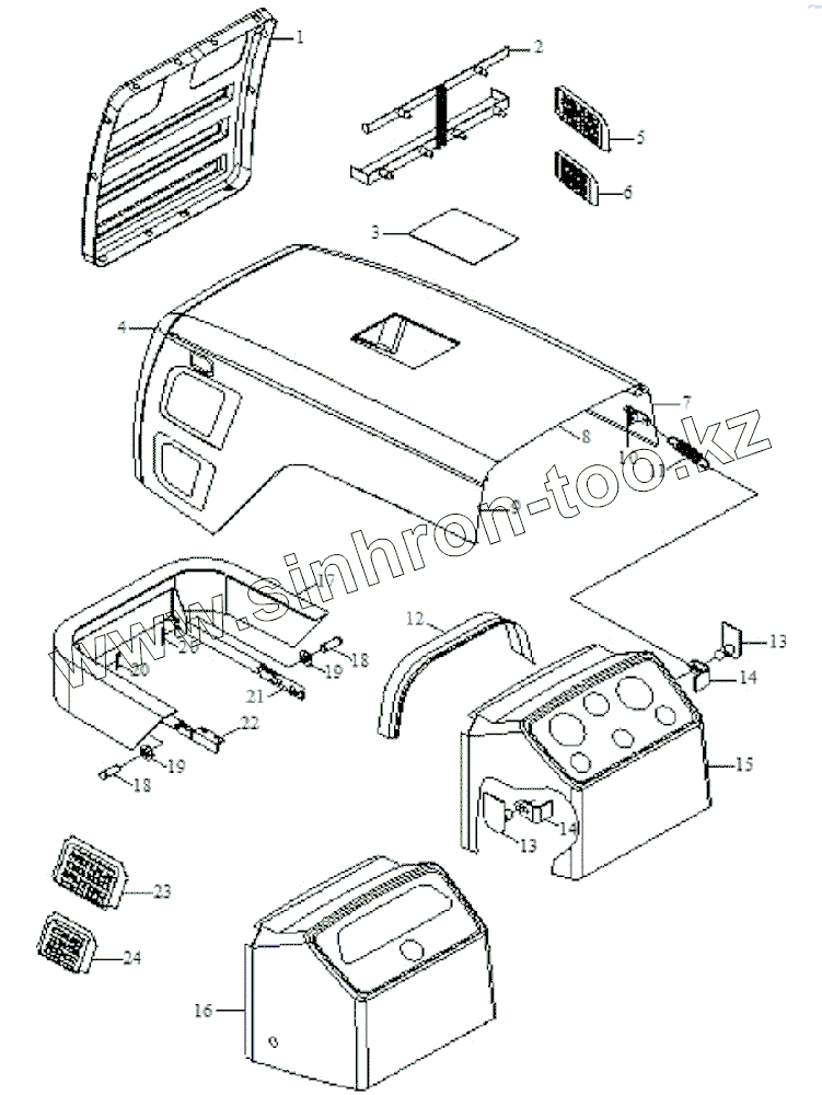 Каталог запасных частей к технике: Foton Europard 25. Helmet and mud guard assembly-1