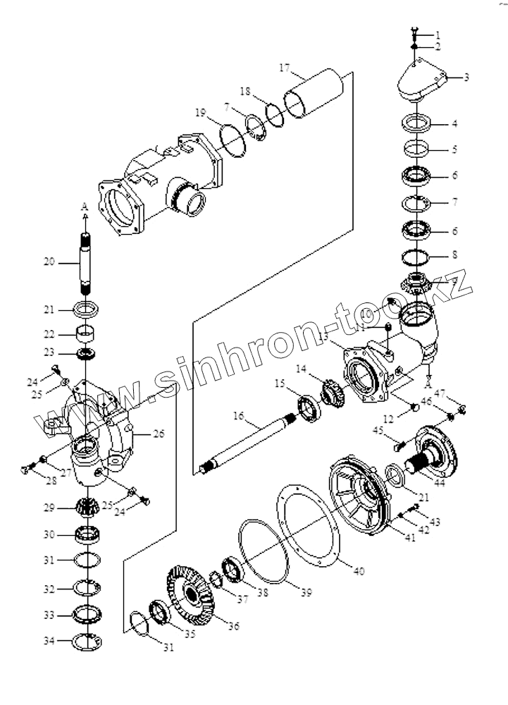 Каталог запасных частей к технике: Foton Europard 40. Front Driving Axle Assembly(yantai)