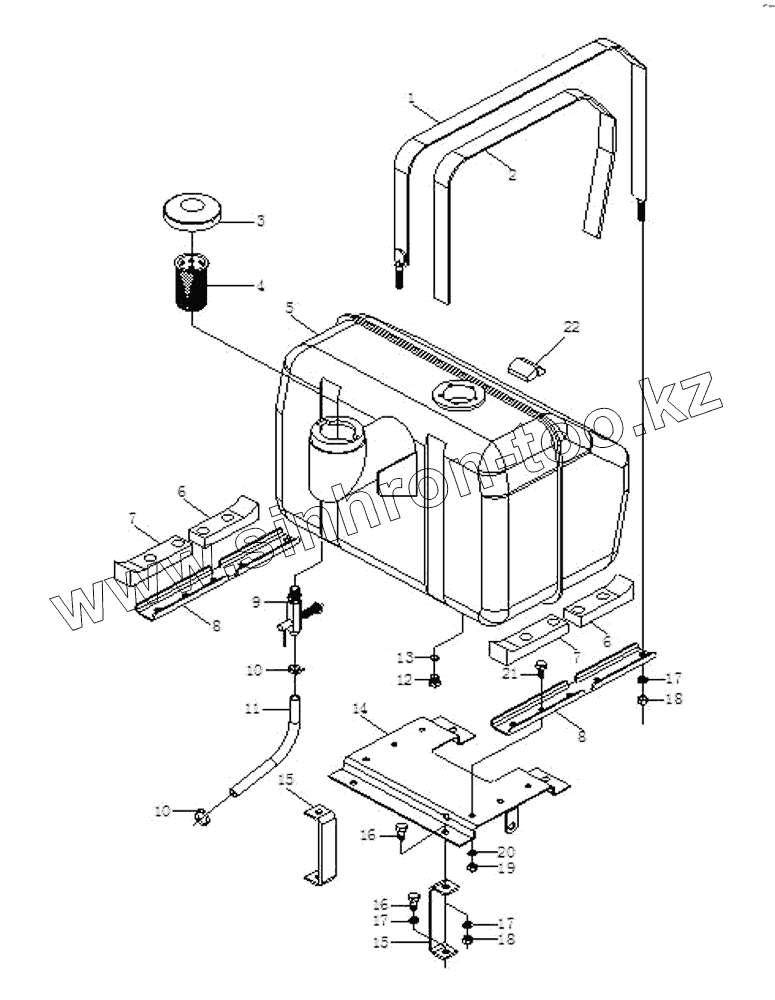 Каталог запасных частей к технике: Foton Europard 40. Fuel Tank and Bracket Assembly