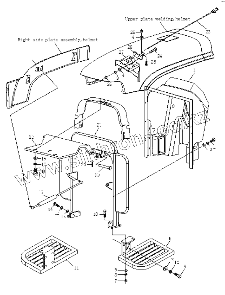 Каталог запасных частей к технике: Foton Europard 40. Helmet Structure Assembly