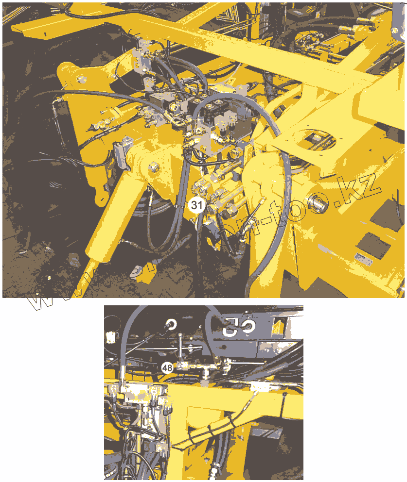 Цилиндр управления впереди, гидравлические шланги, двигатель-стабилизатор впереди