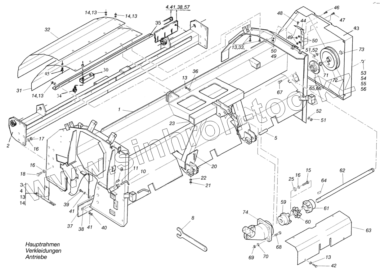 Каталог запасных частей к технике: Franz Kleine SF-10-2. Основная рама, облицовка, приводы