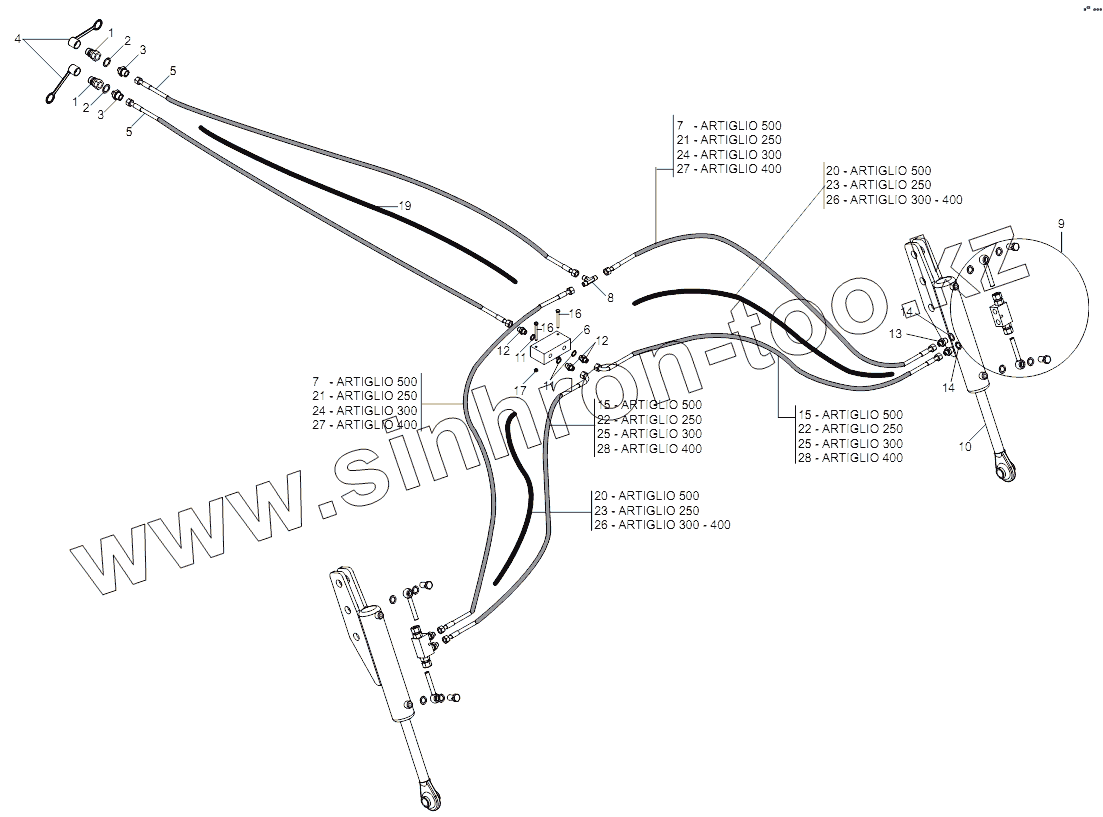 Каталог запасных частей к технике: Gaspardo ARTIGLIO. HYDRAULIC SYSTEM MOD. 2007-2008