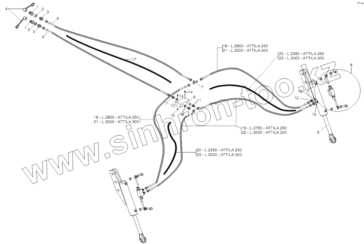 Каталог запасных частей к технике: Gaspardo ATTILA. HYDRAULIC SYSTEM REAR ROLLERS