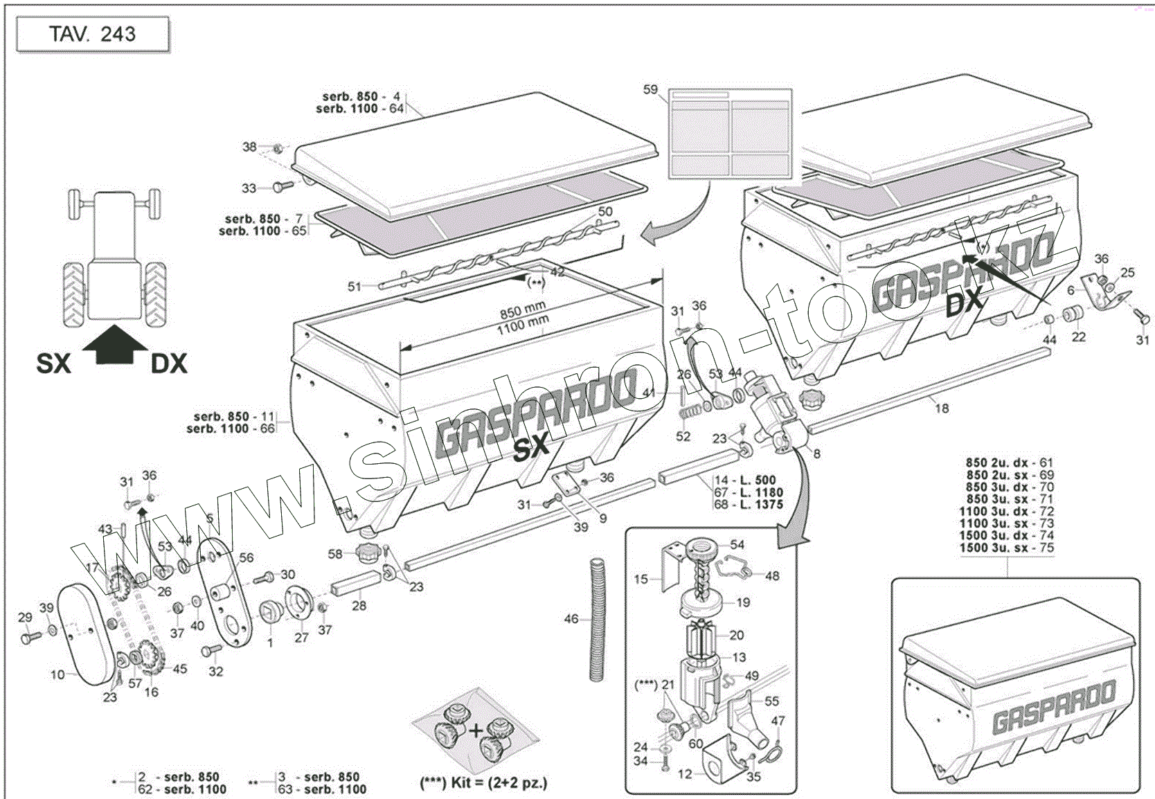 Каталог запасных частей к технике: Gaspardo MAESTRA (MT). PLASTIC FERTILIZER SPREADER TANKS