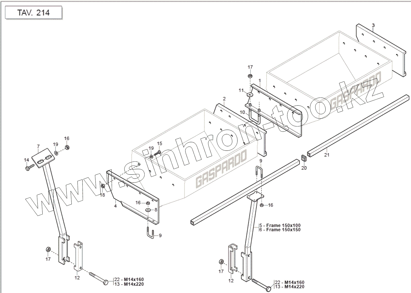 Каталог запасных частей к технике: Gaspardo MAESTRA (MT). SUPPORTS FOR IRON FERTILIZER TANKS