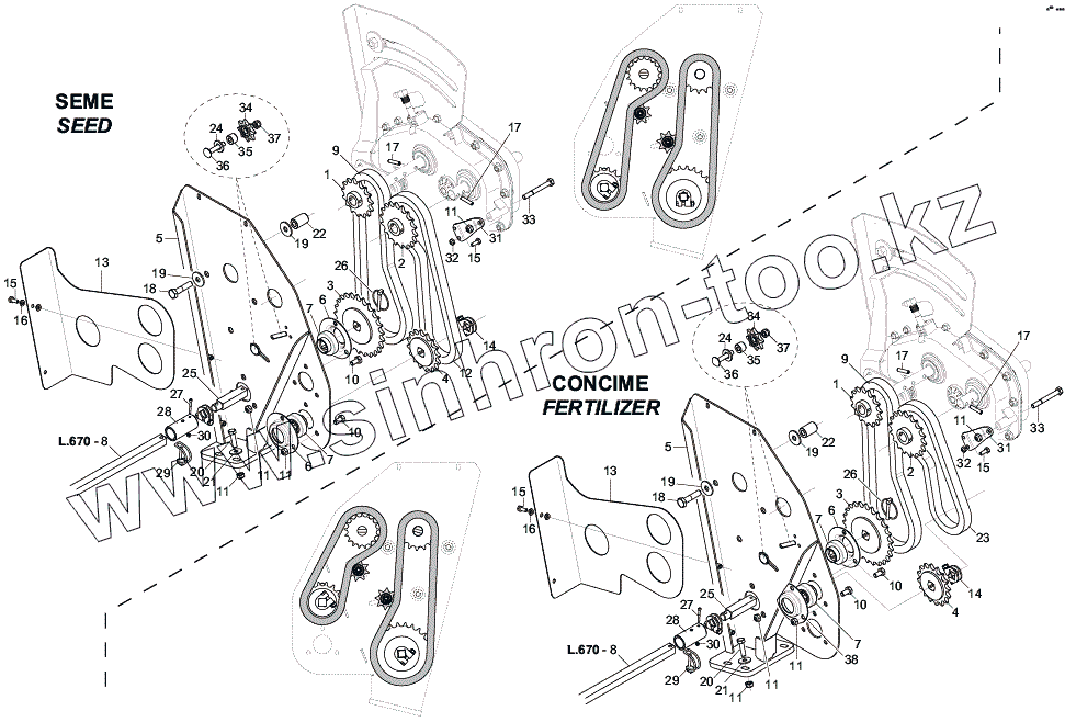 Каталог запасных частей к технике: Gaspardo MEGA 600. FRONT TRANSMISSION