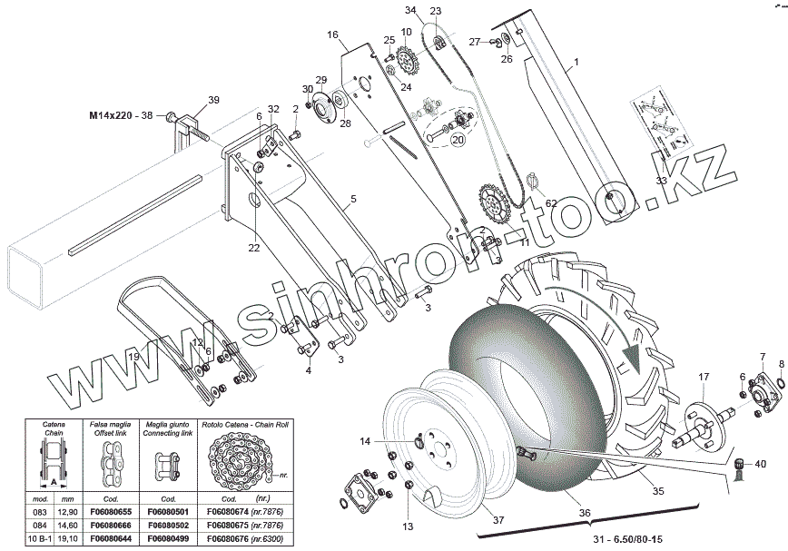 Каталог запасных частей к технике: Gaspardo MEGA 600. TRANSMISSION WHEELS