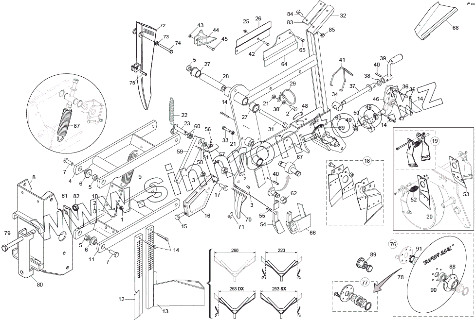 Каталог запасных частей к технике: Gaspardo METRO MT-SP. "MT" ELEMENT FRAME