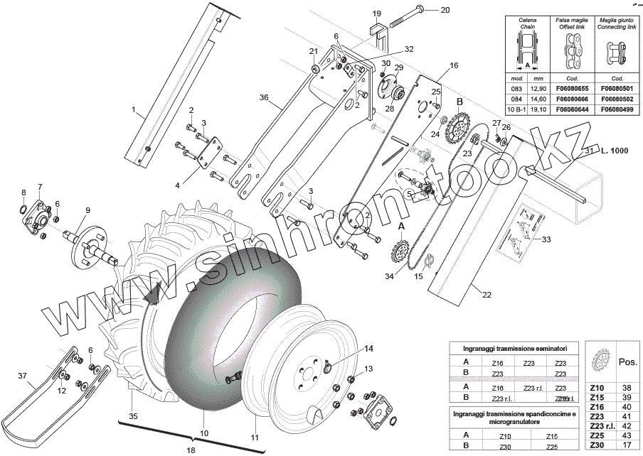 Каталог запасных частей к технике: Gaspardo METRO MT-SP. WHEEL TRANSMISSION
