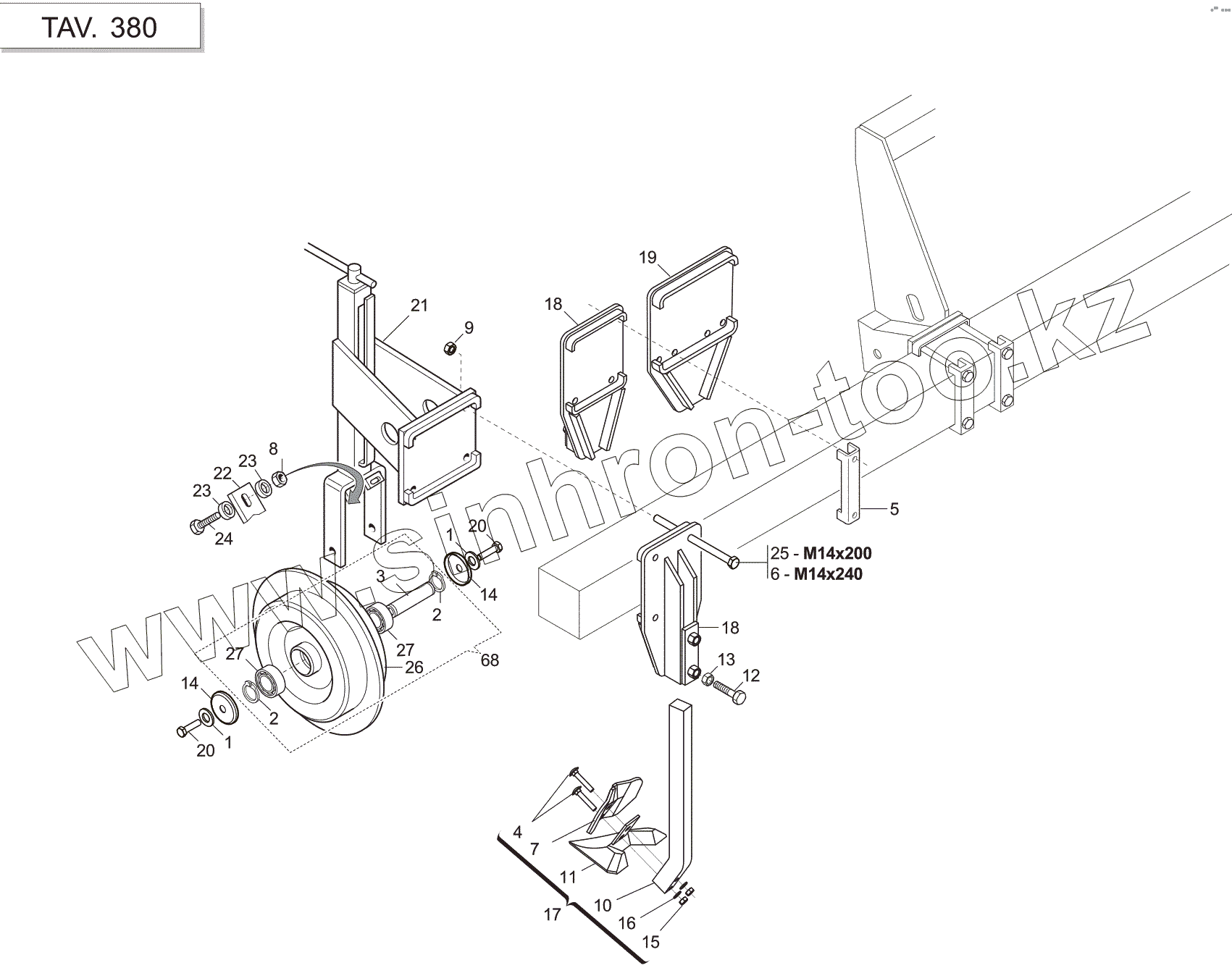 | 25 | F01020232 | BOLT 14X200 5737 8.G GALVANIZ. | |