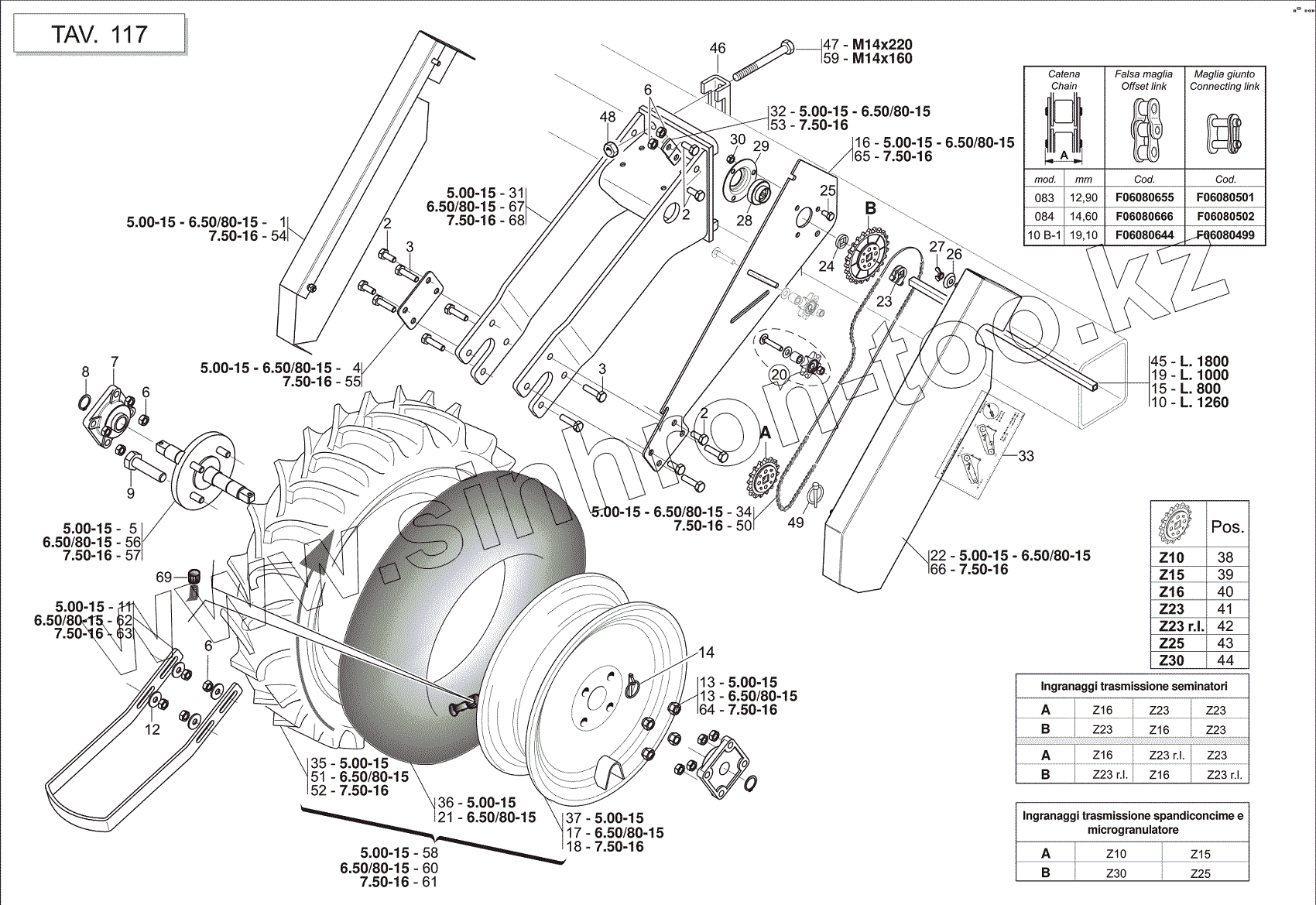 Каталог запасных частей к технике: Gaspardo MT. TRANSMISSION WHEELS