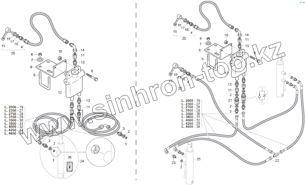 Каталог запасных частей к технике: Gaspardo MT. HYDRAULIC ROW MARKING SYSTEM