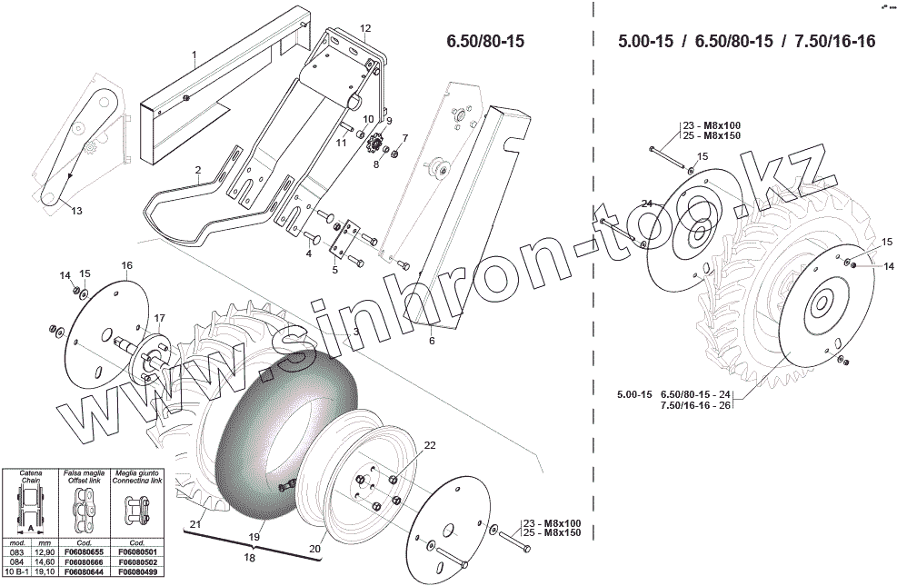 Каталог запасных частей к технике: Gaspardo MT. WHEEL KIT FOR STONY GROUND - WHEEL FLANGE