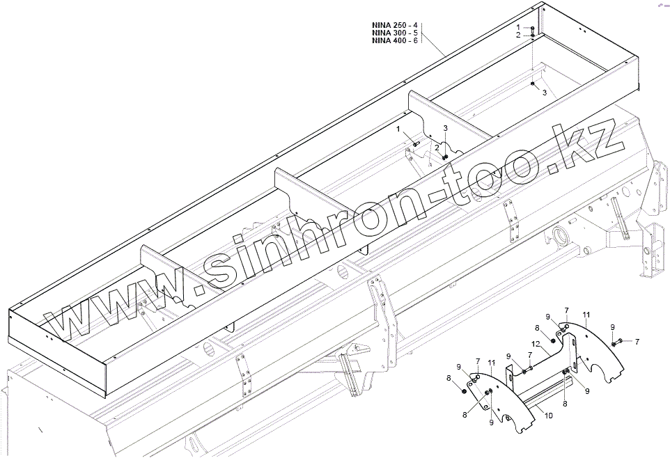 Каталог запасных частей к технике: Gaspardo Nina. SEPARATORS AND RAISING HOPPER