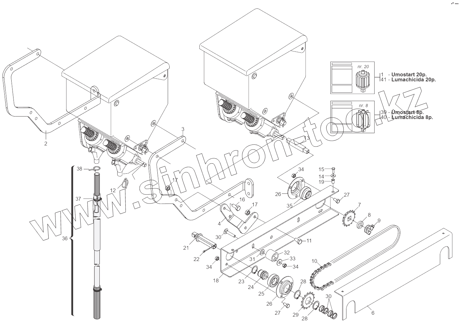 Каталог запасных частей к технике: Gaspardo Сеялка Gaspardo MTR. DOUBLE MICROGRANULATOR APPLICATION