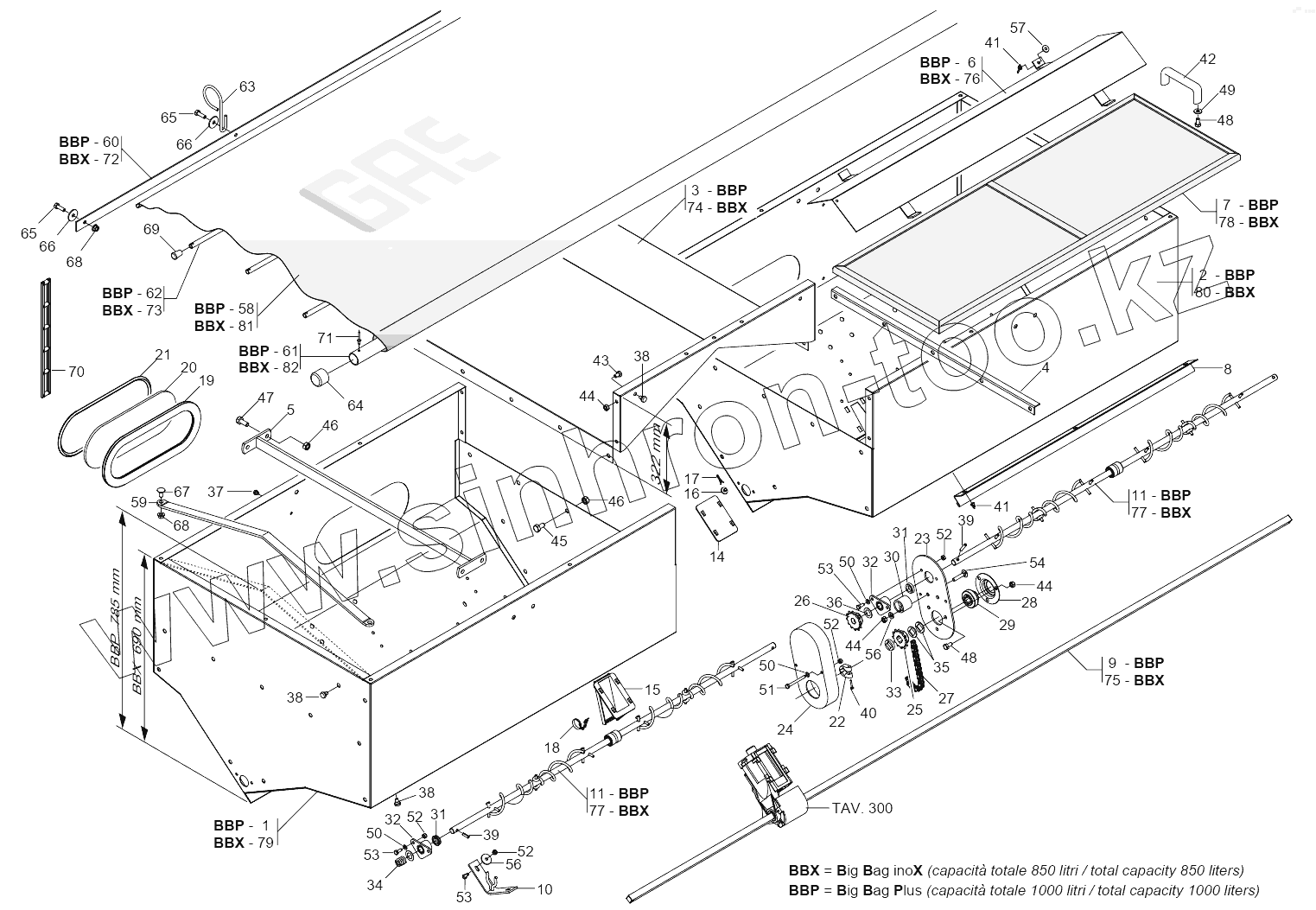 Каталог запасных частей к технике: Gaspardo Сеялка Gaspardo MTR. SPANDICONCIME TANK SINGLE