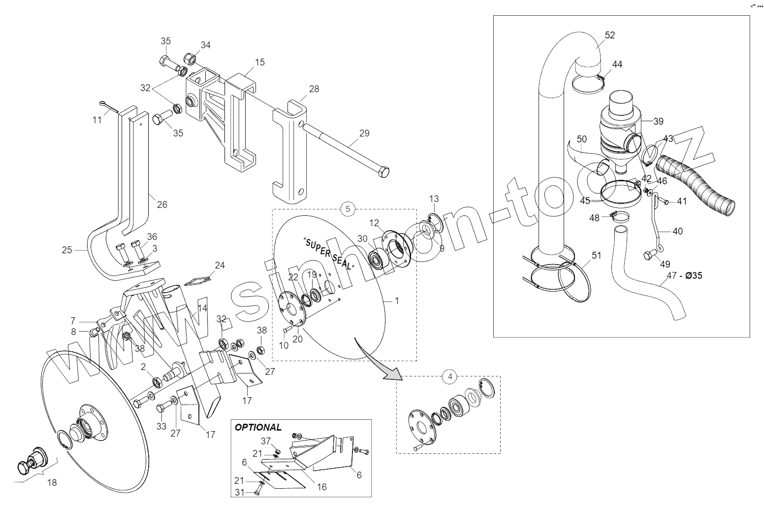 Каталог запасных частей к технике: Gaspardo Сеялка MAXIMETRO. DISC COULTERS FOR FERTILIZER