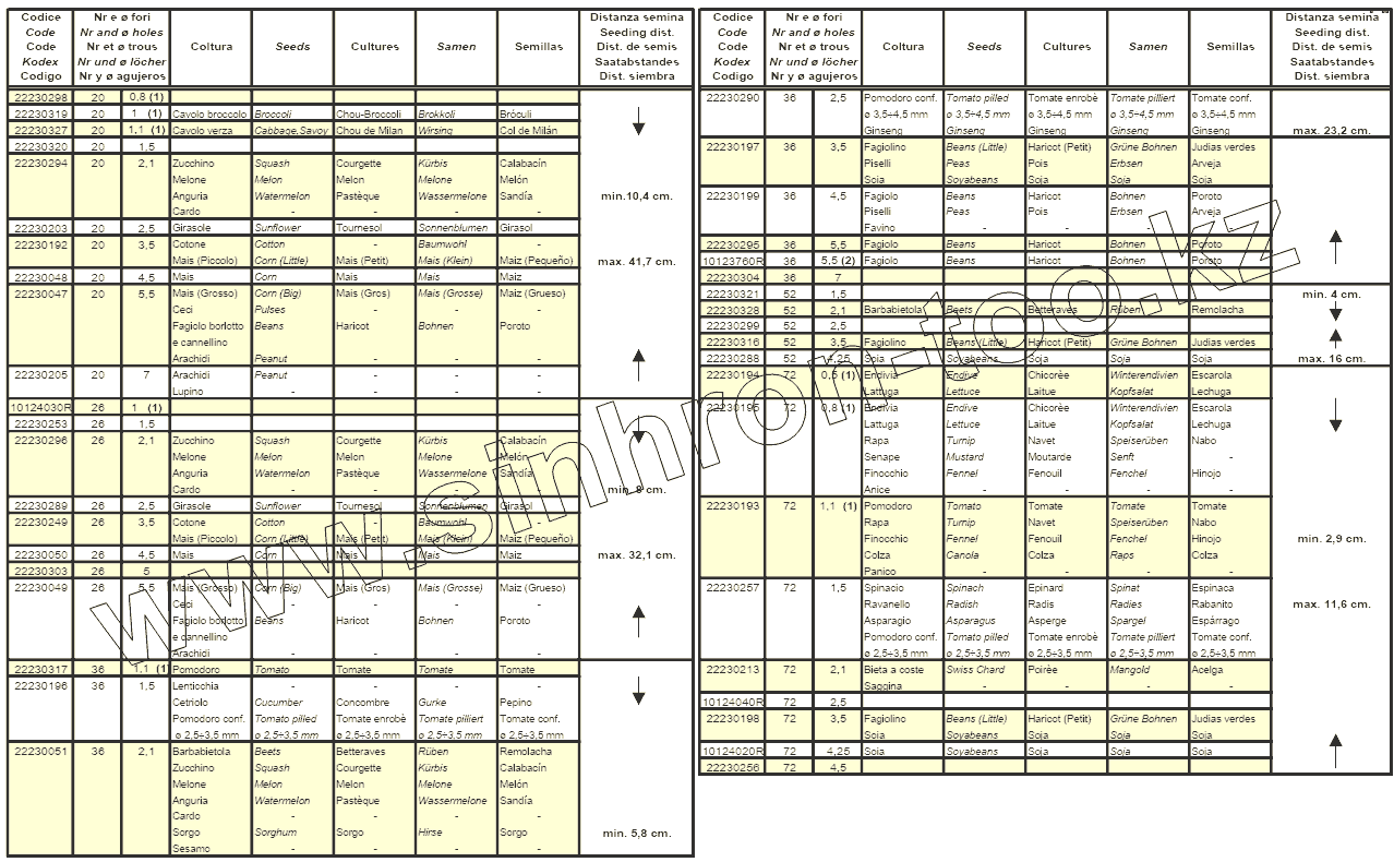Каталог запасных частей к технике: Gaspardo Сеялка MAXIMETRO. TABLE SEED PLATE