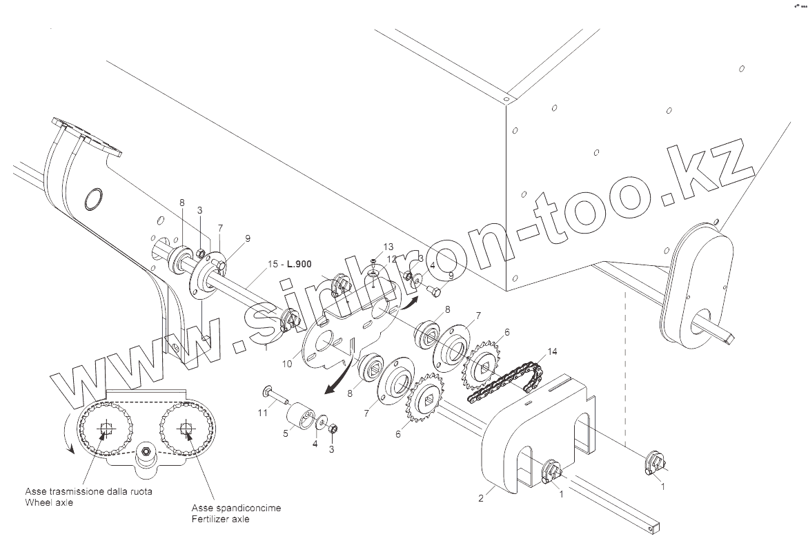 Каталог запасных частей к технике: Gaspardo Сеялка METRO MT/SP. FERTILIZER TRANSMISSION