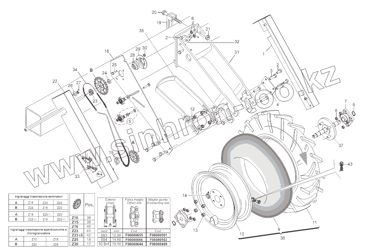 Каталог запасных частей к технике: Gaspardo Сеялка METRO MT/SP. FRONT WHEEL TRANSMISSION