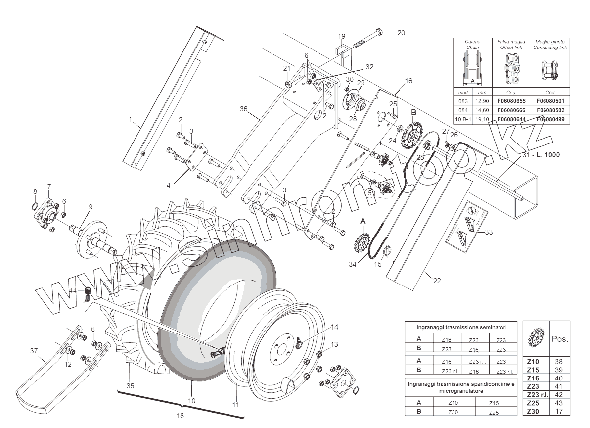 Каталог запасных частей к технике: Gaspardo Сеялка METRO MT/SP. WHEEL TRANSMISSION