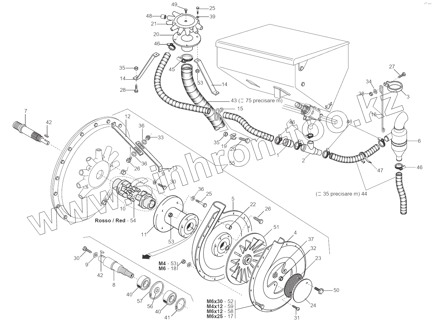 Каталог запасных частей к технике: Gaspardo Сеялка OLIMPIA, ORIETTA-C. PNEUMATIC FERTILIZATION