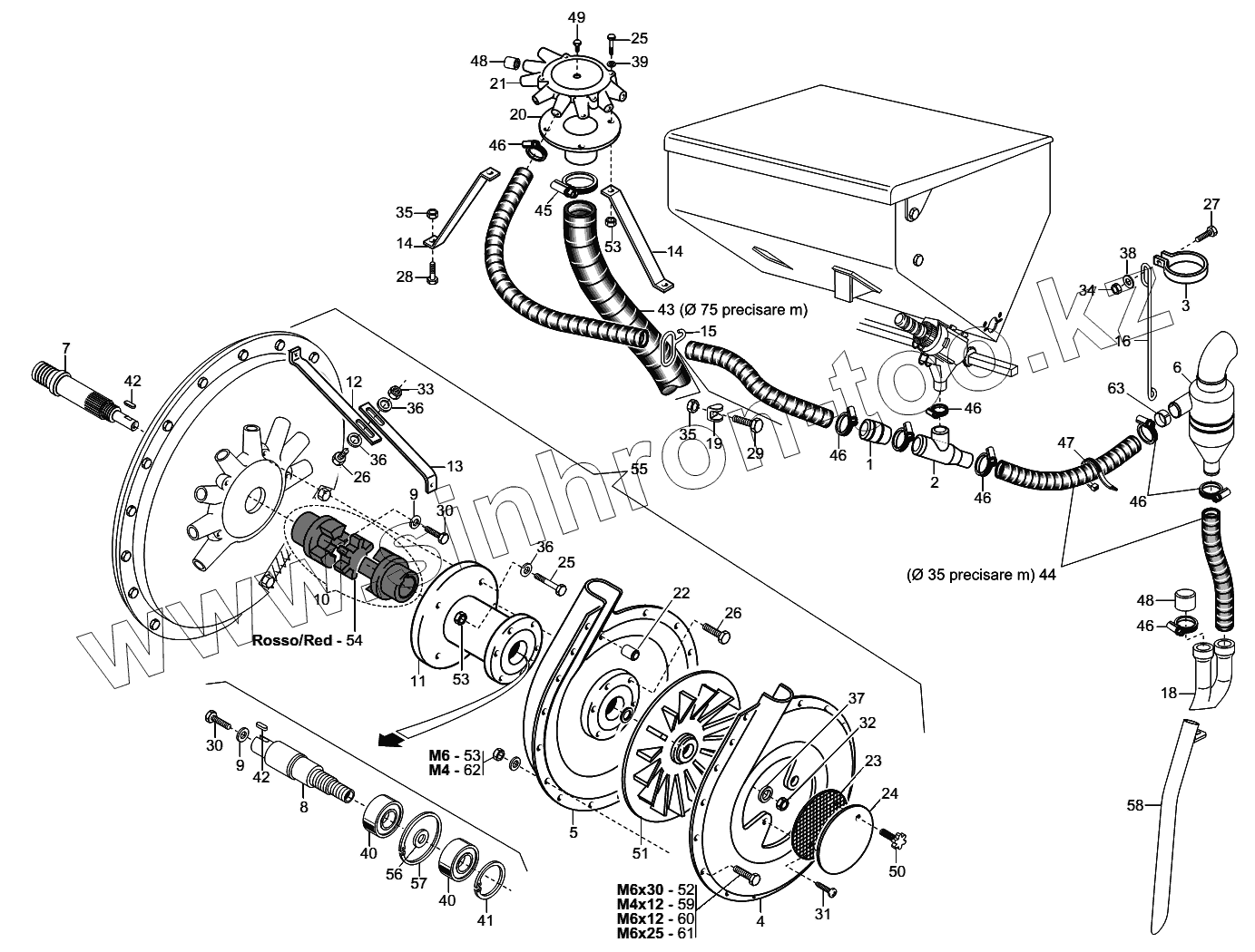 Каталог запасных частей к технике: Gaspardo Сеялка серии МТ. CONCIMAZIONE PNEUMATICA