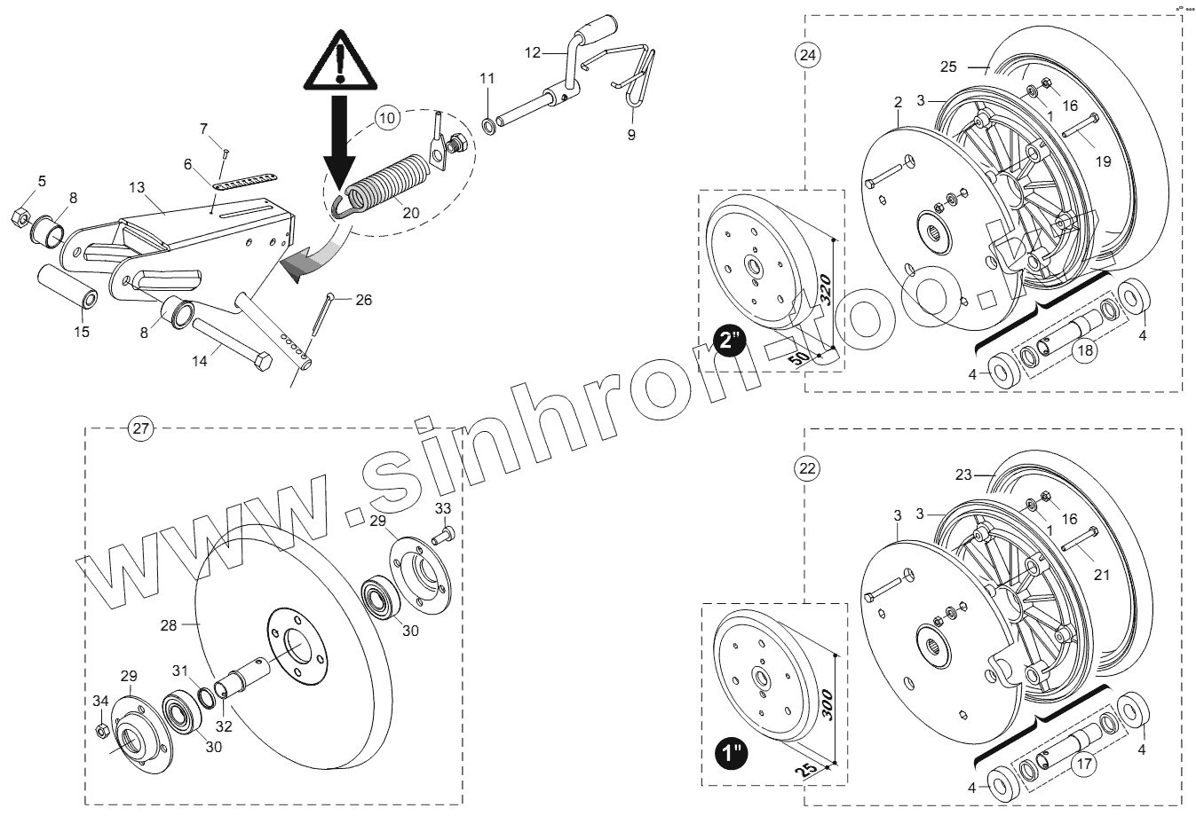 Каталог запасных частей к технике: Gaspardo Сеялка серии МТ. RUOTE DI COMPRESSIONE POSTERIORE