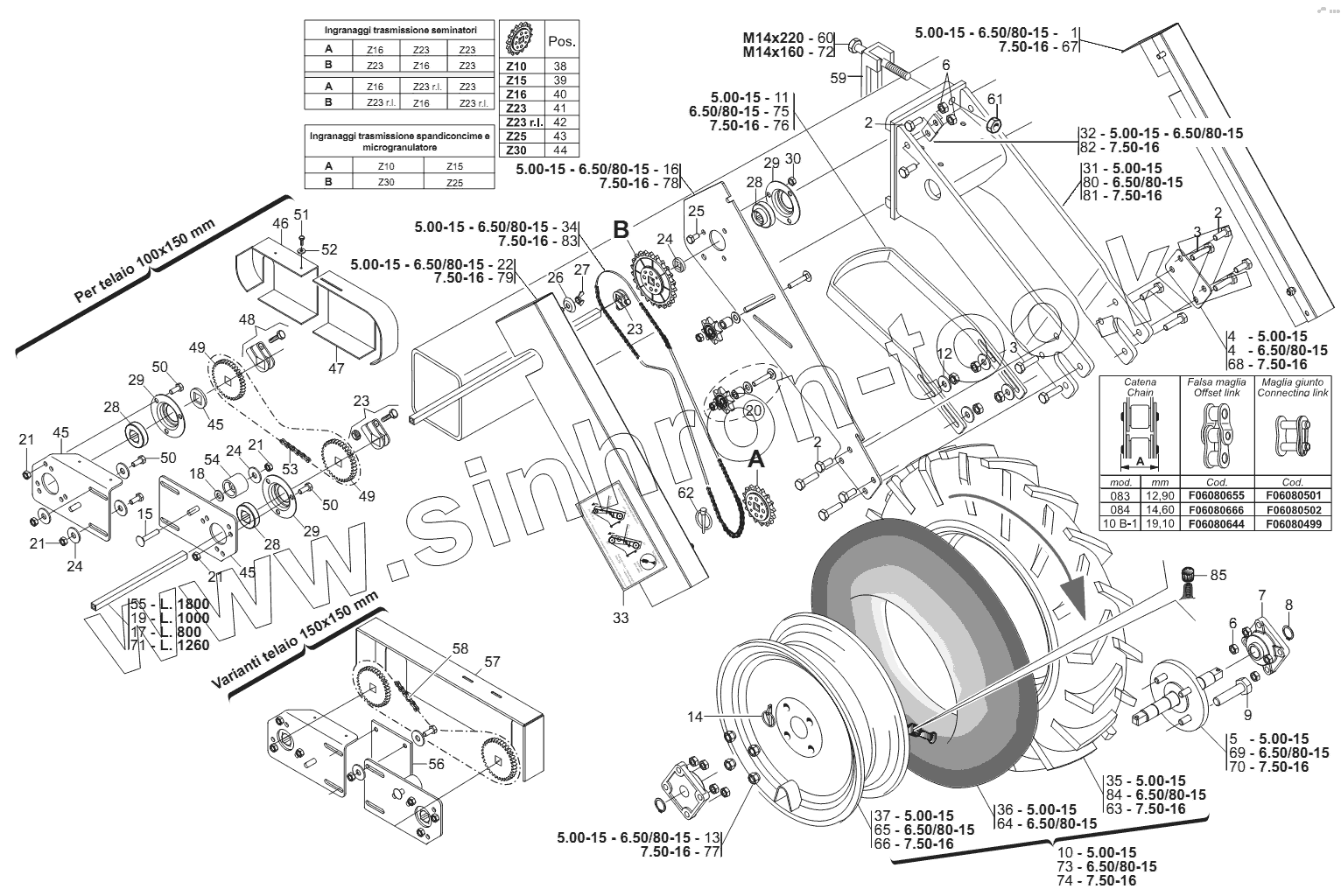 Каталог запасных частей к технике: Gaspardo Сеялка серии МТ. RUOTE DI TRASMISSIONE ANTERIORI