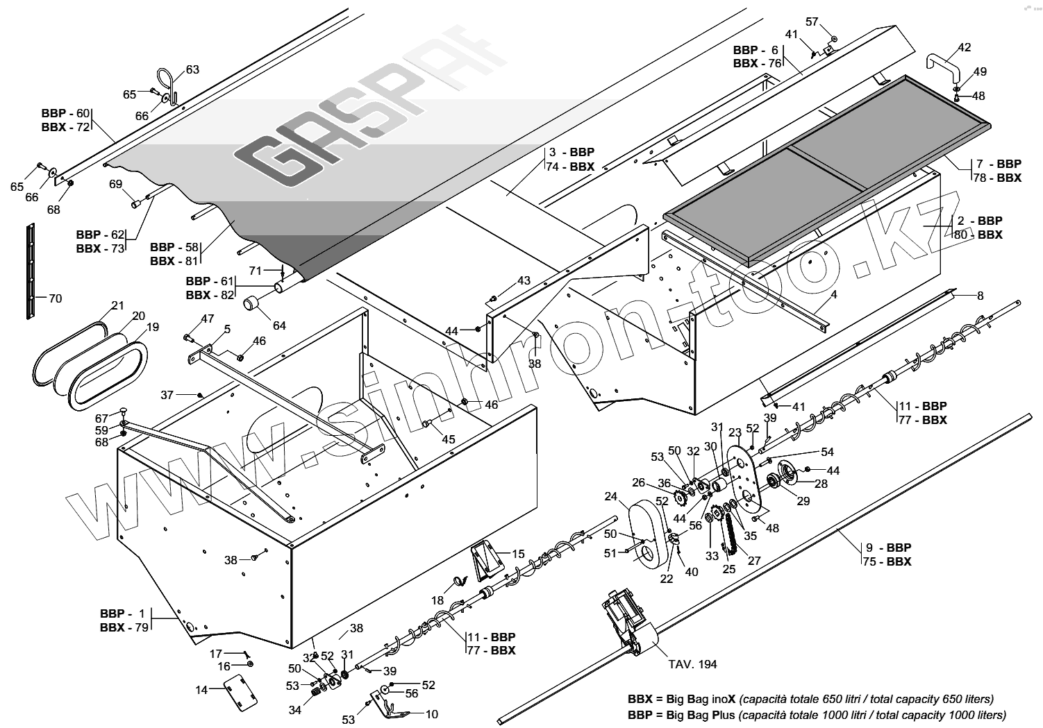 Каталог запасных частей к технике: Gaspardo Сеялка серии МТ. SERBATOIO SPANDICONCIME UNICO