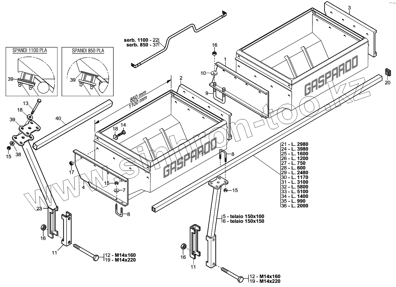 Каталог запасных частей к технике: Gaspardo Сеялка серии МТ. SUPPORTI SERBATOI SPANDICONCIME PLASTICA