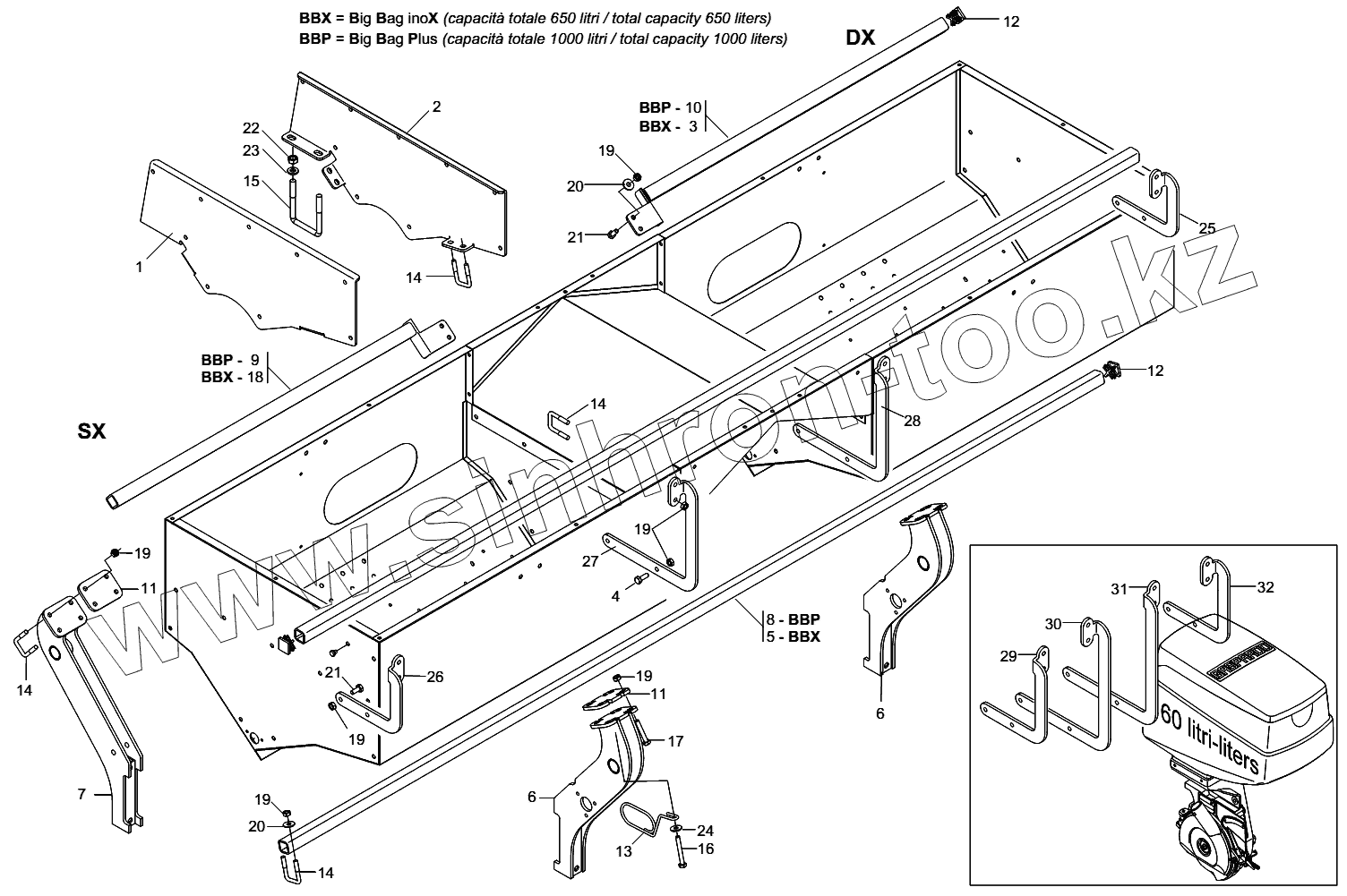 Каталог запасных частей к технике: Gaspardo Сеялка серии МТ. SUPPORTI SERBATOIO SPANDICONCIME UNICO
