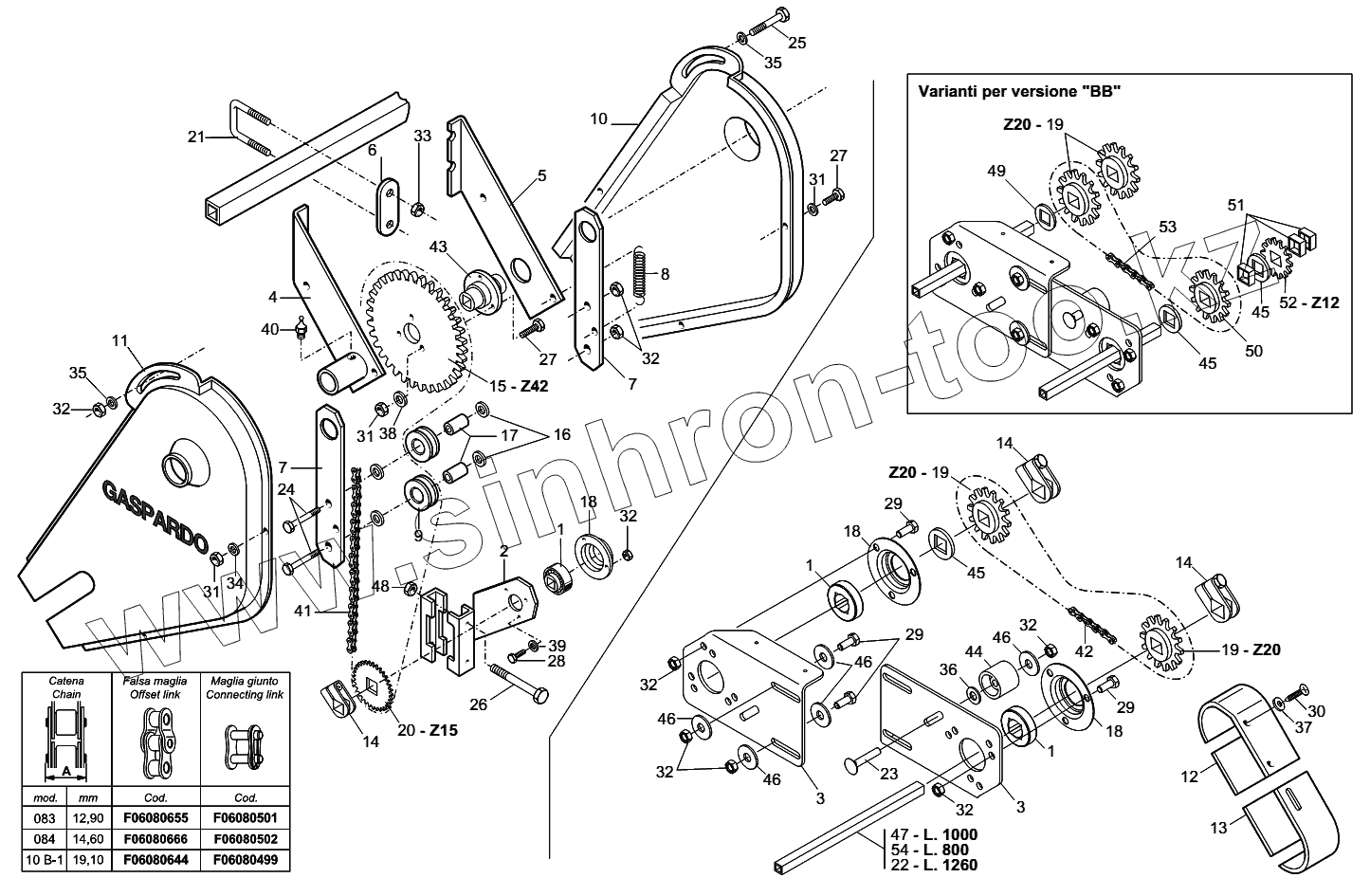 Каталог запасных частей к технике: Gaspardo Сеялка серии МТ. TRASMISSIONE SPANDICONCIME E MICROGRANULATORE