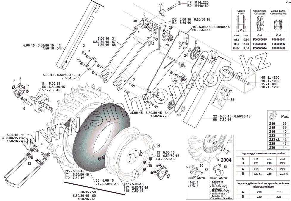 Каталог запасных частей к технике: Gaspardo SI. TRANSMISSION WHEELS